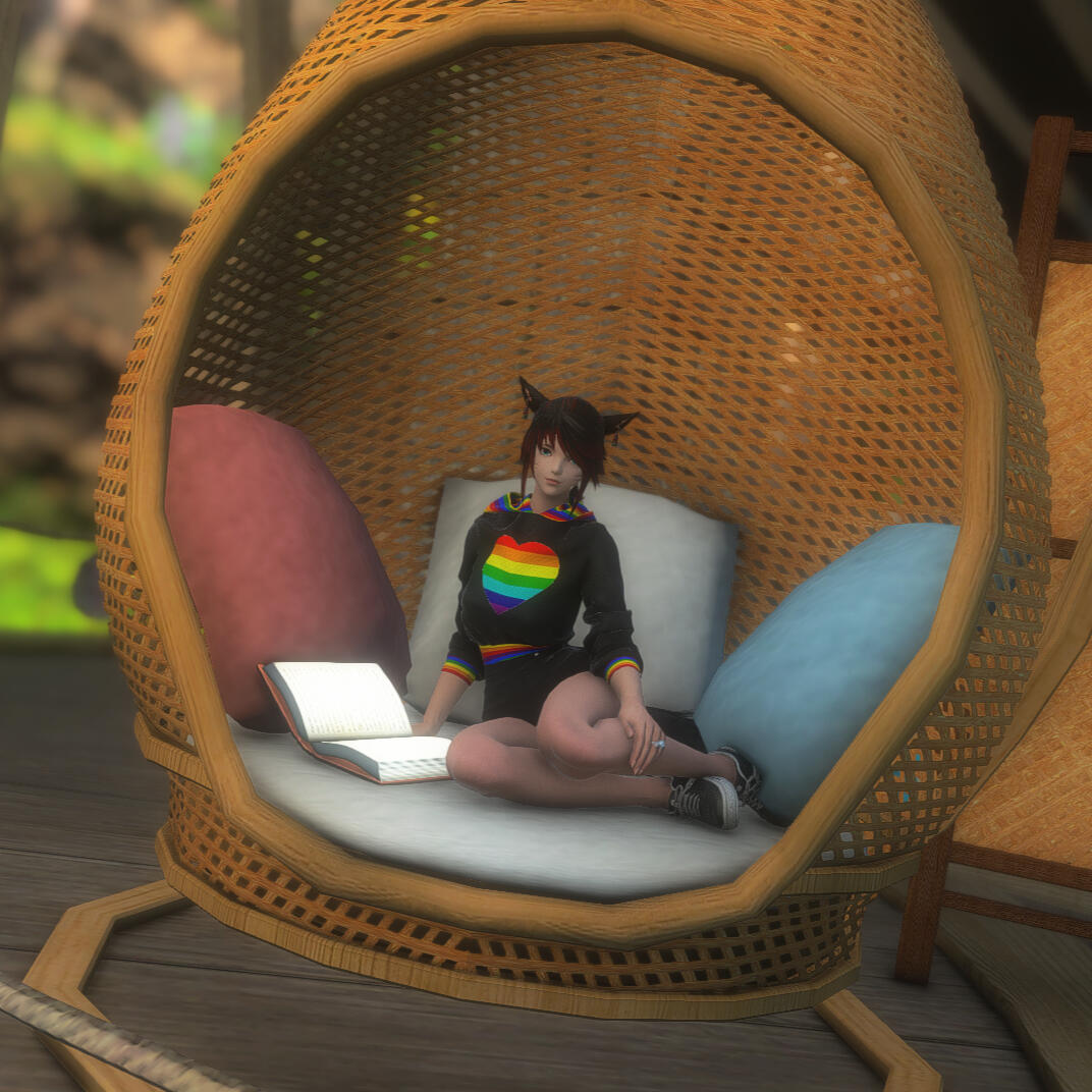 "Aleah is the best auntie there is! Thought me so much about tinkering with jewelry, music, and cooking snacks! She's the coolest miqo'te I know of, for sure."