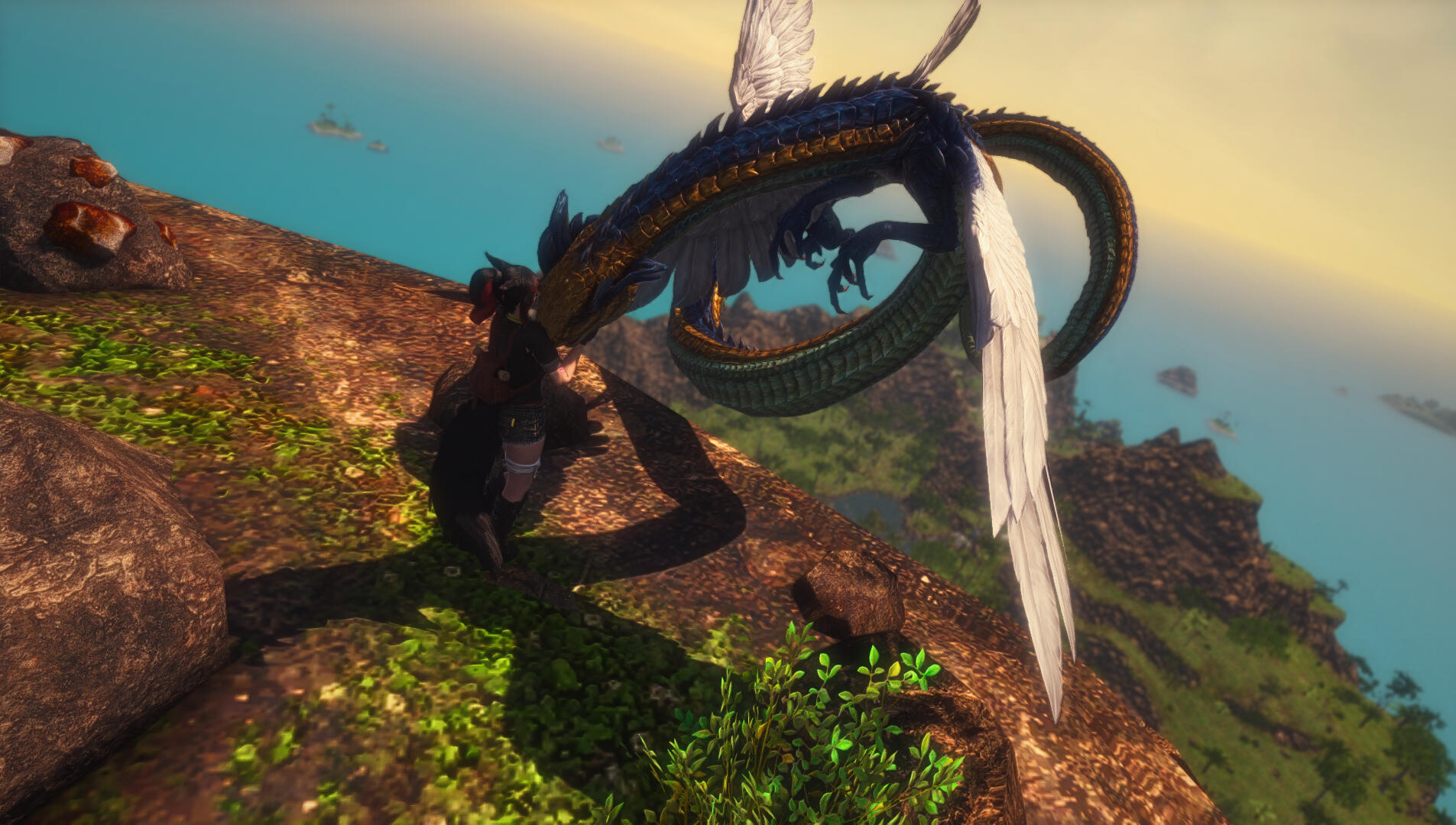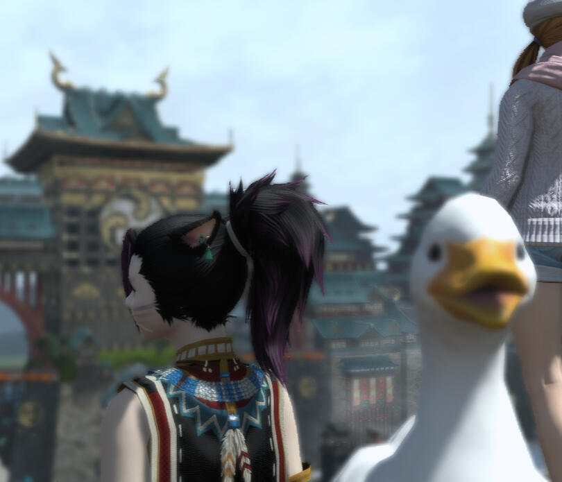 Soon after the ishgard mission the group went back to the temple, as the researchers had made significant progress with uncovering it's secrets. The group once again delved deep into the ruins of the temple, eventually finding the story of a lost viera, who found her home in the temple and formed a bond with a winged serpent. The group eventually found a grove with more ruins of this civilization and within these ruins. An egg with the last winged serpent from this ancient civilization. Aleah's wife ended up adopting and raising the serpent who is now lovingly called "Wings".